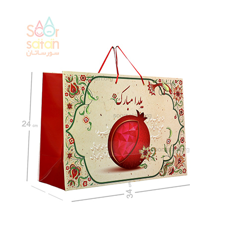 ساک کادو افقی زمینه کرم حاشیه گل یلدا مبارک