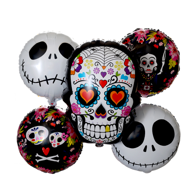 بادکنک فویلی کارتی 5 تکه اسکلت طرح دار و روح هالووین