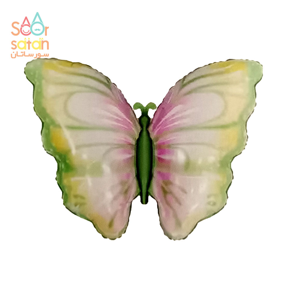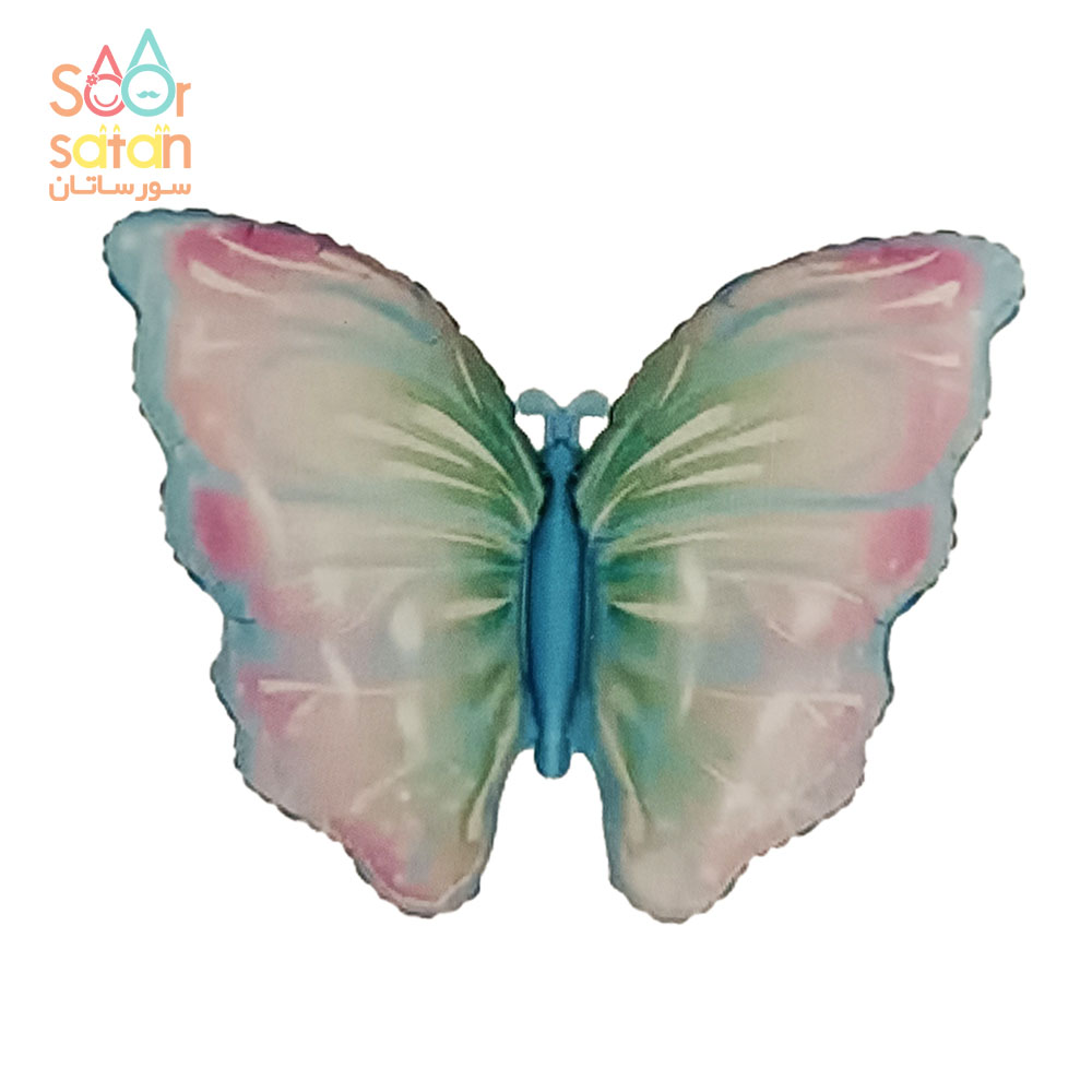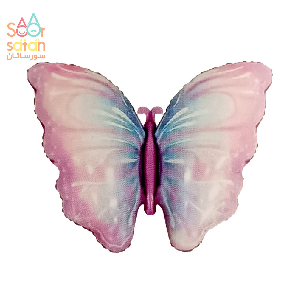 بادکنک فویلی پروانه هفت رنگ صورتی