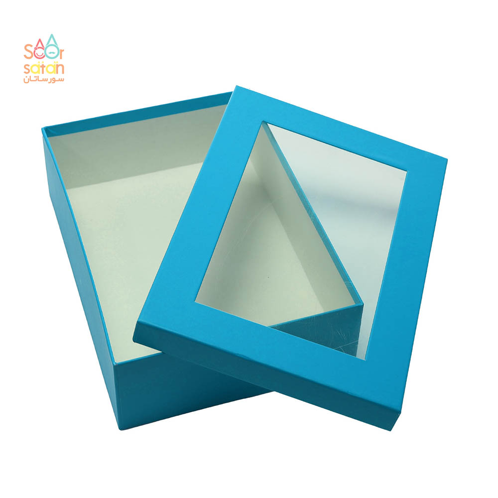 جعبه کادو طلقی مستطیل تک سایز آبی فیروزه ای