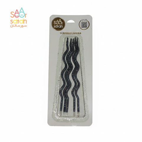 شمع ماکارونی سوپرایز اکلیلی پیچک تک رنگ مشکی کد 8120