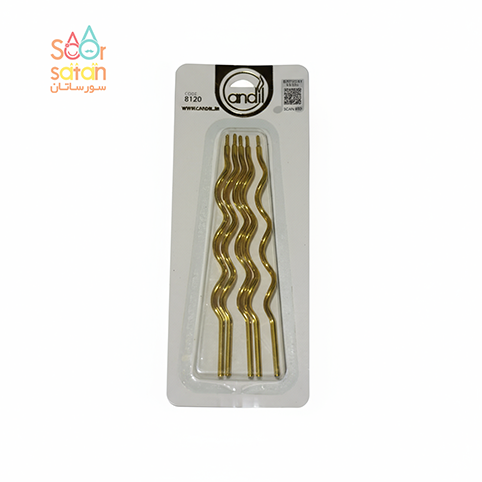 شمع ماکارونی سوپرایز اکلیلی پیچک تک رنگ طلایی کد 8121A