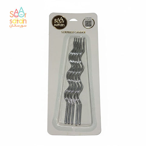 شمع ماکارونی سوپرایز متالیک پیچک تک رنگ نقره ای کد 8120