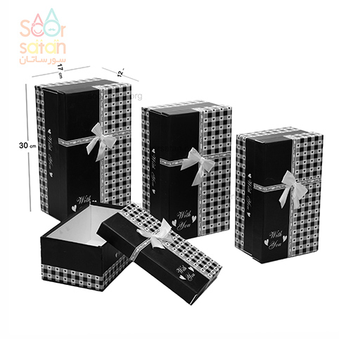 جعبه کادو مستطیل 4 تکه چاپی مشکی کد AD119