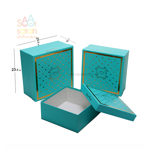 جعبه کادو مکعب 3 تکه طلاکوب قلبی آبی فیروزه ای کد AD111