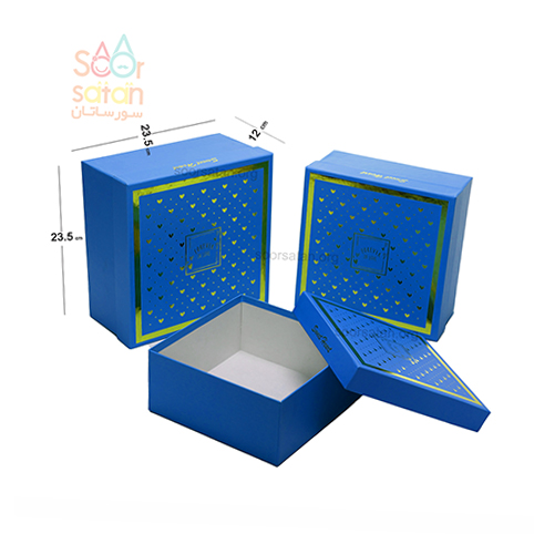 جعبه کادو مکعب 3 تکه طلاکوب قلبی آبی کد AD111
