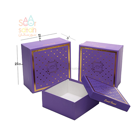 جعبه کادو مکعب 3 تکه طلاکوب قلبی بنفش کد AD111