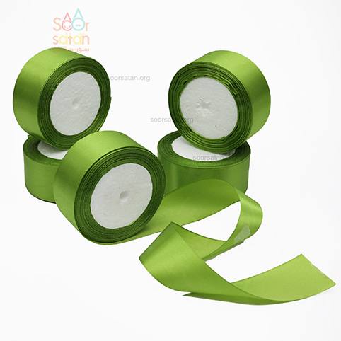 روبان 4 سانتی ساتن سبز زیتونی 25 یارد