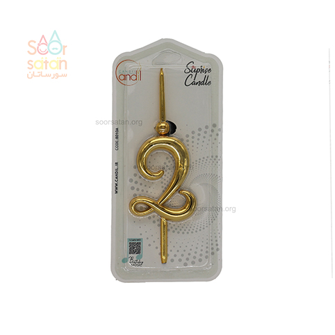 شمع لاتین سوپرایز طلایی عدد 2 کد 8010A