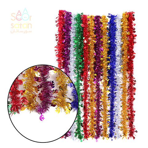 ریسه نخ زری طرح ماه و ستاره رنگ جور