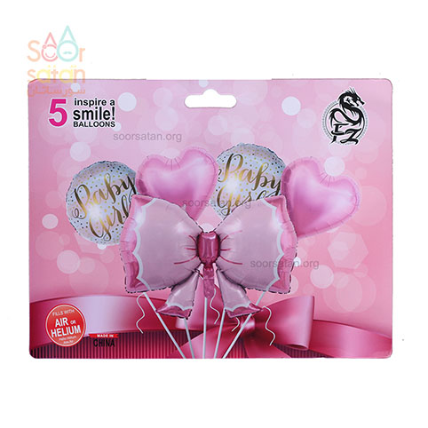 بادکنک فویلی کارتی 5 تکه پاپیون صورتی