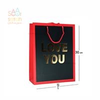 ساک کادو زمینه مشکی طلاکوب LOVE YOU کد MU 320