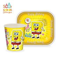 پیش دستی و لیوان تم تولد باب اسفنجی 10 عددی