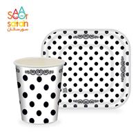 پیش دستی و لیوان تم تولد سفید خال مشکی