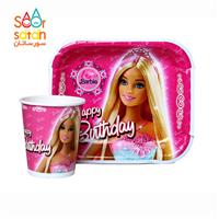 پیش دستی و لیوان تم تولد باربی 10 عددی